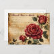 Cartão Postal Rosa Vermelha em Pergaminho Antigo Obrigado