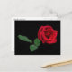 Esta elegante poster apresenta uma refinada rosa vermelha de escarlate solteiro com três folhas verdes sobre um fundo preto.