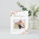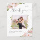 Estas simples e elegantes cartinhas de agradecimento de casamento apresentam rosas cor-de-rosa românticas com folhas verdes e texto cinza suave em um fundo branco limpo para um visual que consegue ser ao mesmo tempo moderno e inspirado no vintage. Adicione seu monograma e foto para personalizar e adicione sua mensagem no verso rosa claro.