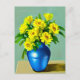 Cartão Postal Rosas Amarelas em Arte Azul Vase Boho