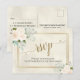 Cartão Postal Rosas Brancas & Eucalipto Dourado RSVP Casamento