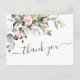 Cartão de Agradecimento de Casamento Rosas Cor-de-Rosa Eucalipto.