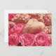 Cartão Postal Rosas Cor-de-Rosa Radiantes e Coração