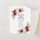 Elegante Watercolor Burgundy Floral Save O Cartão postal de Noivado de Casamento de Data inclui rosas burgundy, rosas cor-de-rosa, rosas vermelhas e verde botânico numa armação de ouro.