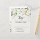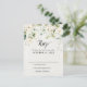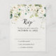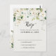 Cartão postal de casamento floral de marfim branco elegante, RSVP, com buquê elegante de branco, marfim, creme e folhas verdes de eucalipto e buquê elegante de aquarela.