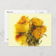 Este cartaz encantador apresenta uma composição estática de rosas requintadas secas em um fundo amarelo. As pétalas têm cor entre amarelo pálido e ouro até um damasco laranja profundo.