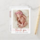 Cartão Postal Rose Gold Script Modern Baby Photo Obrigado
