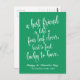 Um simples design de caligrafia, apresenta um provérbio tradicional irlandês: Um melhor amigo é como um trevo de quatro folhas, duro de encontrar, sortudo de ter