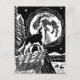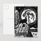 Cartão Postal Rouco de Howling Preto e Branco no Linocut da Noit