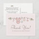 Seu convidado do chá de bebê vai adorar este cartão de agradecimento cor-de-rosa com varal de roupa de bebê e pássaros carregando-as.