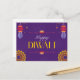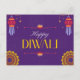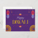 Cartão Postal Roxo Elegante e Lanternas Douradas Happy Diwali