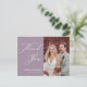 Roxo Elegante Escrito Moderno Foto Minimalista Cartão de agradecimento de casamento. Expresse o quanto você é grato aos seus amigos e familiares que tornaram o seu casamento ainda mais especial com este lindo cartão de agradecimento de foto de casamento. Todos os textos estão pré-organizados para você personalizar fácil e rapidamente com suas próprias palavras.