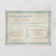 Economize dinheiro E o ambiente usando esses cartões postais RSVP em vez das placas RSVP tradicionais com seus próprios envelopes. Esse tema esquisito, caprichoso e com reviravolta histórica tem um sentimento desvanecido, vintage, angustiado. O texto diz: "O Favor de uma Resposta é Solicitado por [data personalizável] [ano personalizável]." O endereço de retorno, "aceita com prazer", "não atende" e "declina com arrependimento" é totalmente personalizável - faça dele seu! O sentimento de vintage e brincalhão deste RSVP é de certeza que vai separar o seu casamento! O tema cremoso de cor esbranquiçado e azul suave complementa uma cor acentos marrom. Você pode personalizar este design com sua própria cor de sotaque simplesmente clicando em "Personalizar!" acima! __________________________________ Poster vintage Estilo Convite Convite Casamento vintage Suite: Casamento vintage Convite RSVPs: Envelopes Vintage em dificuldades: ___________________________________ Você Também Pode Gostar... Mais designs de casamento vintage do casamento anterior: Produtos populares do casamento anterior: ________________________________________________________________________________