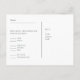 Este modelo de RSVP de dupla face apresenta um modelo de texto em AMBAS as faces para você adicionar os detalhes necessários de RSVP, incluindo opções de menu de casamento, chá de bebê, formatura, aposentadoria, quinceanera, Batismo ou outros eventos e restrições ou alergias alimentares. Experimente o DESIGNER AO VIVO GRATUITO da Zazzle (via a guia 'AO VIVO' na página do produto para obter ajuda no design e criar itens correspondentes. Para obter informações sobre como organizar um casamento que seja inclusivo para aqueles com restrições e alergias alimentares, juntamente com opções de menu e ideias para cada tipo de alergia, visite https://www.budgetweddinginvites.com/post/menu-options-for-wedding-guests-with-allergies-and-free-menu-with-ingredients-template-download. Aqui estão algumas opções alternativas de texto de RSVP:
