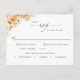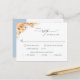 Cartão postal RSVP prático, moderno e elegante. Não há necessidade de envelopes e tudo pronto para os convidados preencherem e enviarem a resposta! Belo design com detalhes florais em uma bela mistura de pêssego, laranja, pincel, champanhe e tons de creme. COM OU SEM ESCOLHAS DE REFEIÇÕES. Capacidade de apagar as escolhas das refeições e, em vez disso, acrescentar uma nota encorajadora aos convidados (ou seja, "Mal posso esperar para vê-lo lá" ou "Espero que consiga"). Detalhes da caligrafia escrita à mão. De volta com faixa em tom azul atraente. Parte da nossa coleção "Peach Floral Delight with Blue" com uma variedade de produtos de coordenação disponíveis. Visite toda a extensão desta coleção em: https://www.zazzle.com/collections/peach_floral_delight_with_blue-119436951689312574