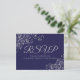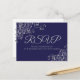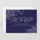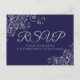 Cartão Postal RSVP de Casamento Azul do Marinho Elegante Silver