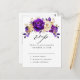 Cartaz publicitário RSVP, do Elegante tema do ouro roxo, com buquê elegante de roxo real, índio, ouro, flores amarelas de rosa e folhas de eucalipto. Entre em contato comigo para obter ajuda sobre a personalização ou se você precisar de outro produto com este design.
