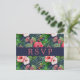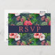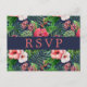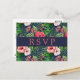 Cartão Postal RSVP de Casamento de Marinho Tropical Floral Hibis