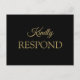 Cartão Postal RSVP de Casamento Dourado e Negro Romântico