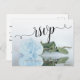 Este belo cartão RSVP vai facilitar aos seus convidados responder ao seu convite de casamento. A design apresenta um belo rosa de cor azul pálido e poeirento refletindo em uma piscina de água com ondas e ondulações, e um título de caligrafia de escrita antiga. A parte de trás foi projetada para seus hóspedes preencherem e retornarem com espaço para que eles indiquem sua escolha de refeições, assim como o número de hóspedes que irão comparecer.