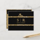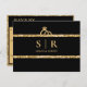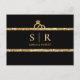 Cartão postal de casamento Rsvp de stripe de brilho preto e dourado. Personalize as iniciais do monograma e os detalhes do casamento.