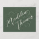 Cartão Postal RSVP de Casamento Verde do Elegante Script Simples