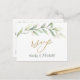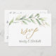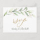 Cartão-postal RSVP Elegante com uma ilustração de aquarela de folhagem verde e dourada.