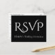 Este rico de cartão postal RSVP, design glamouroso, apresenta a mensagem "RSVP" na frente, juntamente com um nome de ocasião personalizado. Ele também apresenta um formulário de RSVP personalizado no verso, juntamente com um endereço personalizado ao qual as placas de RSVP completadas seriam enviadas. Cartões RSVP como este podem ser usados para descobrir quem vai participar de uma festa de janto, de uma recepção de casamento, de uma festa de aniversário, de um chá de casamento ou de outra celebração.