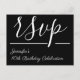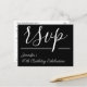 Este elegante design de cartão postal RSVP apresenta a mensagem "rsvp" na frente, juntamente com um nome de evento/ocasião personalizável. Ele também apresenta um formulário de RSVP personalizado no verso, juntamente com um endereço personalizado ao qual as placas de RSVP completadas seriam enviadas. Cartões RSVP como este talvez pudessem ser usados para descobrir quem vai estar participando de um chá de casamento, de uma festa de Natal, de uma festa de janto ou de algum outro evento.