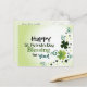 Uma citação inspiradora personalizada Rua. Cartão postal do Dia de Patrick apresenta uma bela bênção irlandesa; "Que o sorriso do Senhor vos leve à glória." Ele tem um design de shamrock delicioso e a saudação traseira pode ser modificada para os detalhes de sua escolha.~