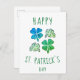 Rua Feliz do Shamrock Verde. Rua, cartão postal do Patrick. Quatro shamrocks em diferentes tons verdes. Feliz Rua, dia de Patrick para sua família, amigos e outros. Vestuário com quatro folhas para a sorte.