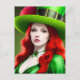 Mulher gerada por IA com cabelo vermelho e um grande tofat verde para Ruas. Dia de Patrick