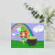 Cartão Postal Rua Pat's Day Redhead Girl Leprechaun com Rainbow