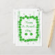 Cartão postal com meu brilhante design de trevas de quatro folhas e estrelas bonito e galerias. O texto diz "Ruas Felizes. Dia de Patrick!"
