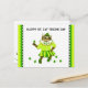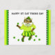 Cartões postais do Dia de Patrick com um gato giro dançando o jig irlandês entre os shamrocks.