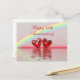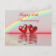 Cartão postal com minha obra de arte original de dois corações rubis vermelhos flutuando na água sob um arco-íris. O texto personalizável diz "Feliz 40º Aniversário".