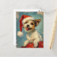 "Capturar o espírito festivo com nosso charmoso cobrir de cartão de Natal com um adorável Russell Terrier fazendo um chapéu de Papai Noel. Este design entusiasmante traz alegria e sorri para os seus entes queridos, fazer que seja uma escolha perfeita para espalhar alegria de férias."