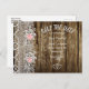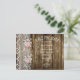 Cartão Postal Rustic barnwood & Lace Salvem A Data Casamento