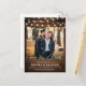 Luzes de cordas-serras russas e jarro de pedras com burgundy, vermelho, Marsala, marrom, marfim, buquê floral de cor escamosa e folhas de eucalipto no casamento de fundo de madeira Salve a data do cartão-postal personalizável. Entre em contato comigo para obter ajuda sobre a personalização ou se você precisar de outro produto com este design.