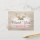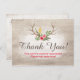 Cartão Postal Rustic Deer Antler Bohemian Floral Wood Obrigado