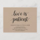 Este é o moderno e simples design Rustic Kraft, temido, em preto, convite para Festas de casamento Reprogramado (adiado/adiado) (o amor é paciente). É a maneira perfeita e elegante de fazer o anúncio de reagendamento para seus amigos e família.