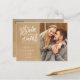 Esta foto rustic hand script salve o cartão de data e apresenta a sua foto e um script salve a data acima dos seus nomes, data e local. O inverso tem detalhes adicionais sobre a data, incluindo o site do seu casamento em um fundo kraft rústico. Projetado por Thisnotme©
