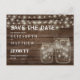 Cartão Postal RUSTIC Save Date Mason Jars Strings Luzes Casament