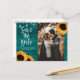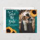 Cartão Postal Rustic Teal Sunflower Foto Para Salvar A Data