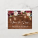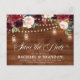 Casamento floral de madeira russa do país salve o cartão de data com gráficos florais de cor d'água pintados manualmente / rosas em tons ricos de Burgundy , azul de marinho vermelho Marsala e cor-de-rosa/cor-de-rosa/cor-de-rosa/pêssego e charmoso estilo de letreiros com luzes de String mason jar e fundo de madeira de rendas. Entre em contato comigo para obter ajuda sobre a personalização ou se você precisar de outro produto com este design.