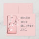 Cartão-postal com uma encantadora design gráfica que captura a essência da Primavera com os desejos Sakura em japonês. Flores rosa deliciosas em ramos delgados são definidas em um pano de fundo rosa suave.Sinta-se livre para personalizar esta mensagem de acordo com o seu gosto. Você tem a opção de escrever seu texto em japonês. Perfeito para as suas festas e comemorações do Sakura! O texto japonês diz "Sakura no hana ga shiawase o hakonde kimasu yō ni" ="Que a cereja floresça traga felicidade."