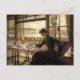 Pintura da era do Victorian da jovem mulher na cabine do seu navio com a grande janela com vista dos navios no porto. Pintura das belas artes do vintage de Inglaterra por James Tissot.