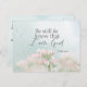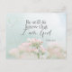 Cartão-postal com uma citação inspiradora A escritura retrata um simples jardim botânico com bonito flores cor-de-rosa e um fundo azul macio. Apresenta a Bíblia Verse Psalm 46:10, "Fique quieto e saiba que sou Deus." A saudação, a oração pode ser personalizada ou excluída para uma mensagem manuscrita.
