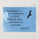 Pássaro voando através do céu azul, com Bíblia Verso de culto e elogio: "Quão inestimável é seu amor inabalável, Ó Deus! As pessoas refugiam-se na sombra das suas asas. Salmo 36:7"