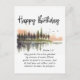 Cartão postal de citação inspiradora de aniversário apresenta uma simples aquarela da natureza com árvores refletidas na água. Apresenta o Salmo 1-3 da Bíblia, "Que você seja como uma árvore plantada junto a rios de água, Que dá seu fruto na sua estação, E sua folha não murcha; E em tudo o que faz, prospera." _